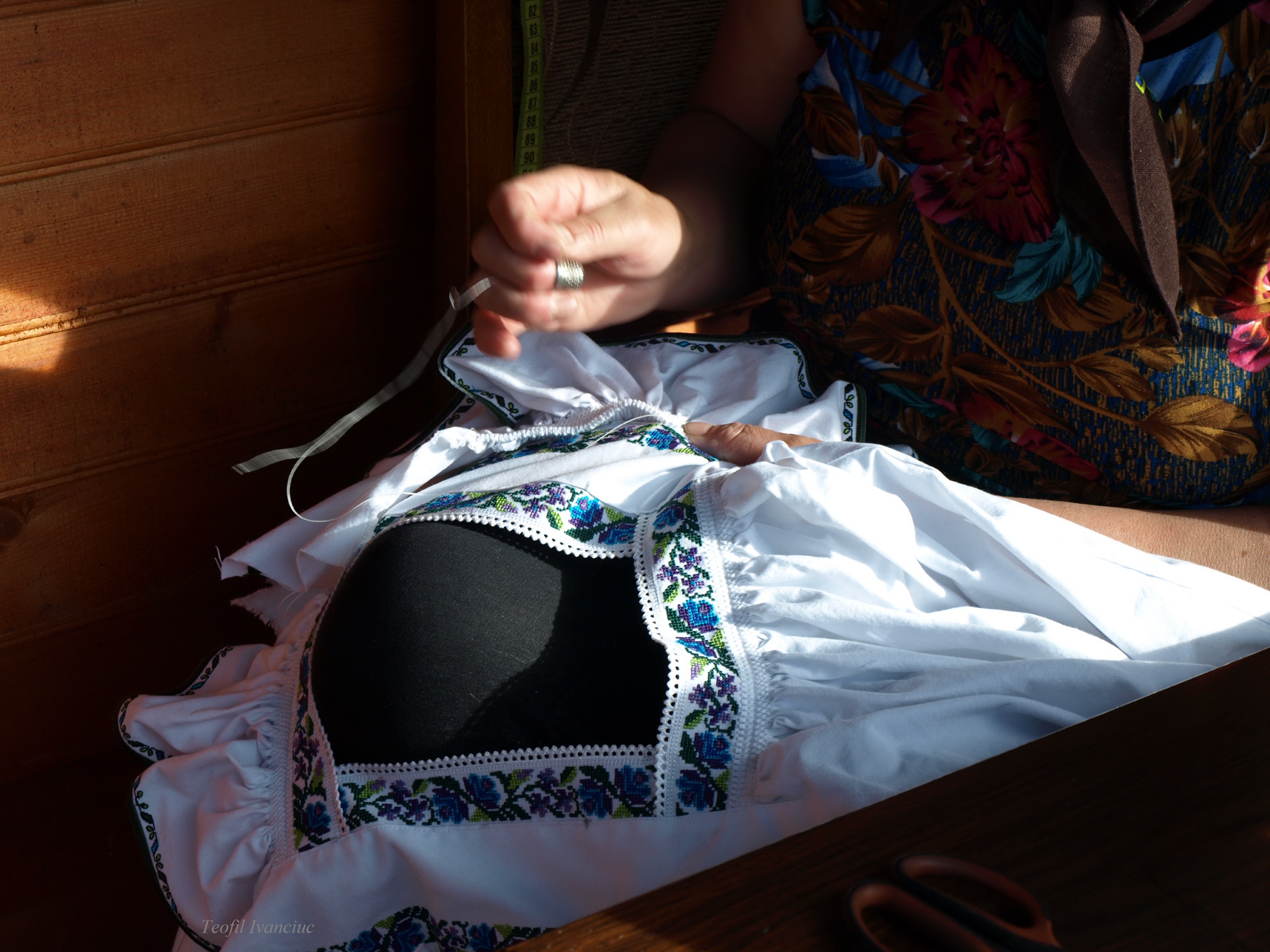Fine embroidery on woman shirt
